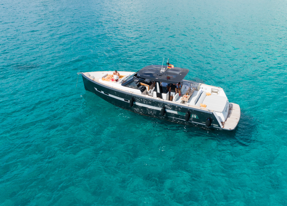 The Fjord 48 Open "Sugar" promises a day of indulgence, excitement, and discovery along the Mallorcan coast. With a professional crew at your service, all you need to do is relax and enjoy the journey.